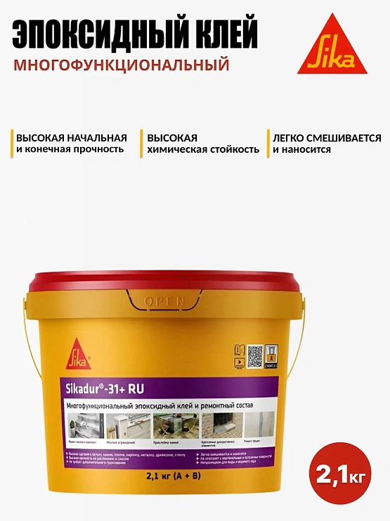 Sikadur®-31+ RU — это профессиональный двухкомпонентный эпоксидный клей и ремонтный состав, обладающий влагостойкостью и тиксотропными свойствами. Этот уникальный продукт сочетает в себе высокую прочность, удобство нанесения и универсальность, что делает его идеальным решением для сложных ремонтных и конструкционных задач.