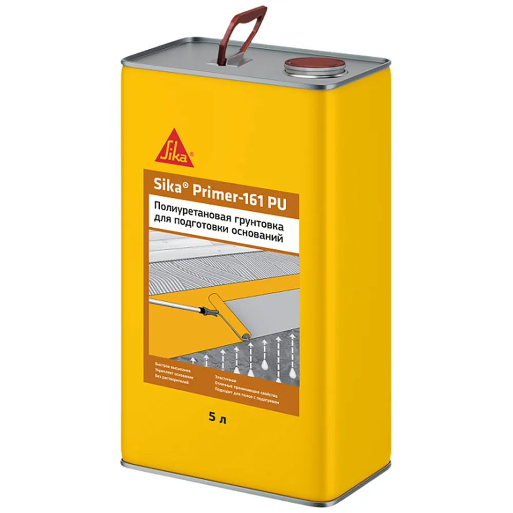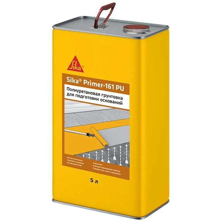 Sika Primer-161 PU применяется для грунтования, герметизации и упрочнения впитывающих и не впитывающих оснований. Упрочнение верхнего слоя стяжки, изоляция остатков старого клея. Может использоваться в качестве влагонепроницаемой мембраны (влажность до 3,5 СМ-% или 5% по Tramex) на черновых полах, не находящихся под постоянным гидростатическим давлением. Может использоваться на полах с подогревом (максимальная влажность 3 СМ-% или 4,5 % по Tramex). Цвет: коричнево-прозрачный.
