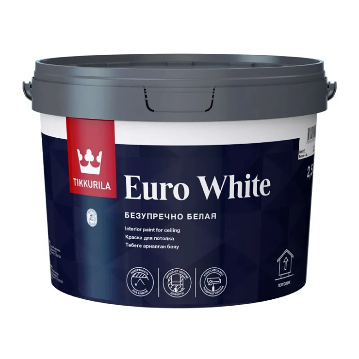 Краска для потолка Tikkurila EURO WHITE белая гл/мат 2,7 л