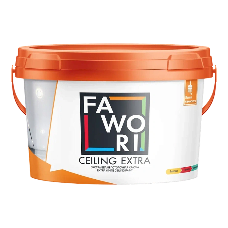 Краска для потолка Fawori Ceiling Extra идеально сцепляется с поверхностями. Не образует пузырей и не отслаивается.Время высыхания