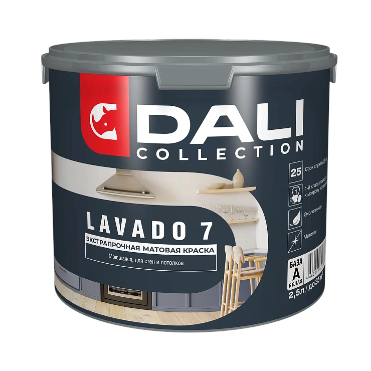 LAVADO 7 — это акриловая моющаяся краска, предназначенная для стен и потолков в сухих и влажных помещениях. Она образует плотное матовое покрытие, устойчивое к истиранию и образованию пятен. Краска быстро сохнет, не имеет неприятного запаха и безопасна для здоровья, что позволяет использовать её в жилых комнатах, офисах и детских.