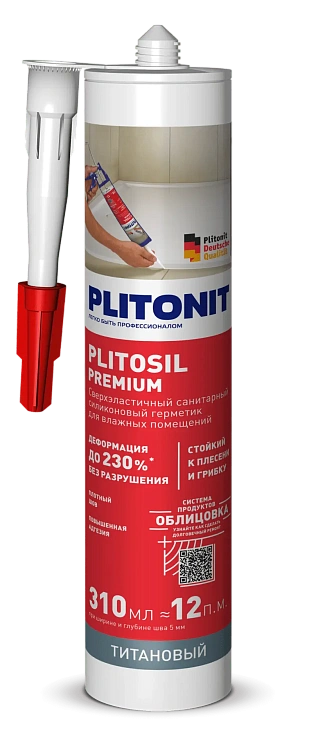 PLITOSIL Premium – высокоэластичный санитарный герметик кислотного отверждения для влажных помещений
