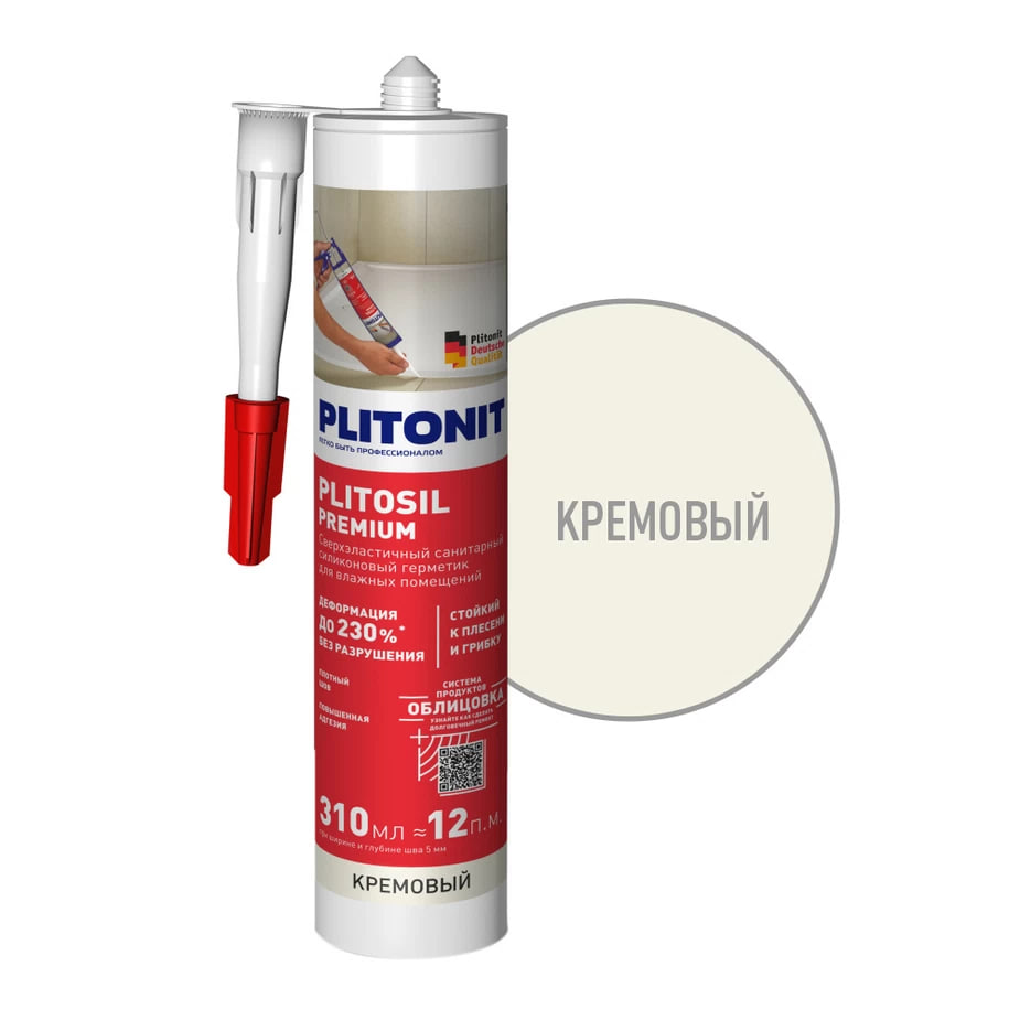 PLITOSIL Premium – высокоэластичный санитарный герметик кислотного отверждения для влажных помещений