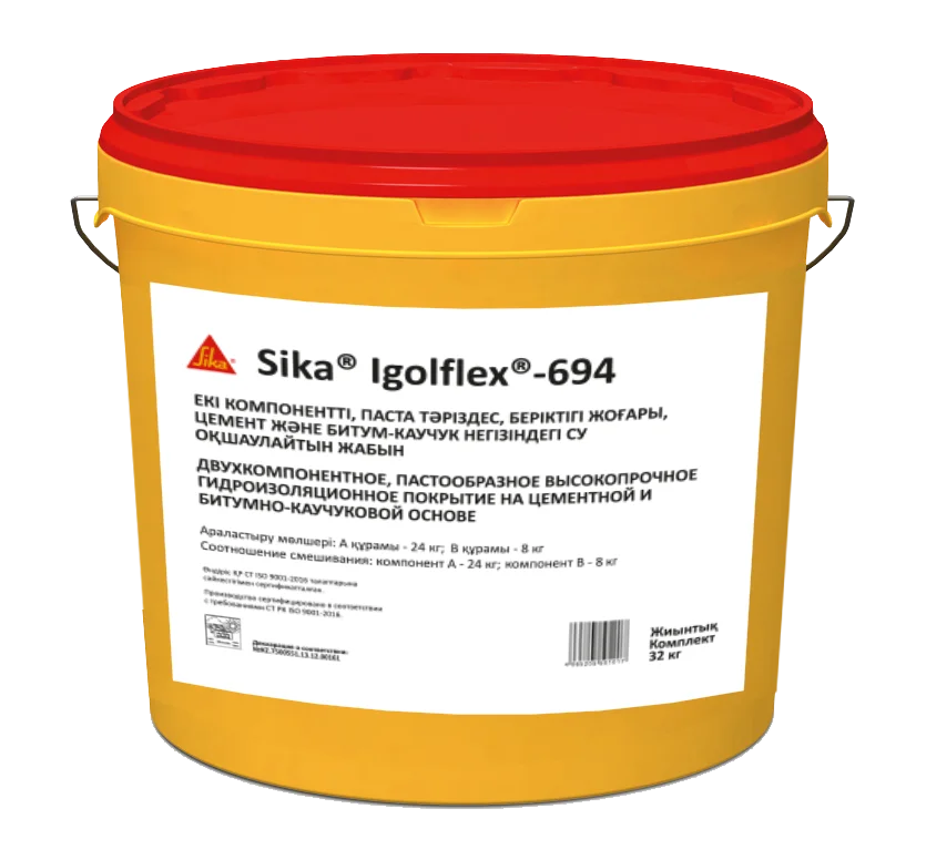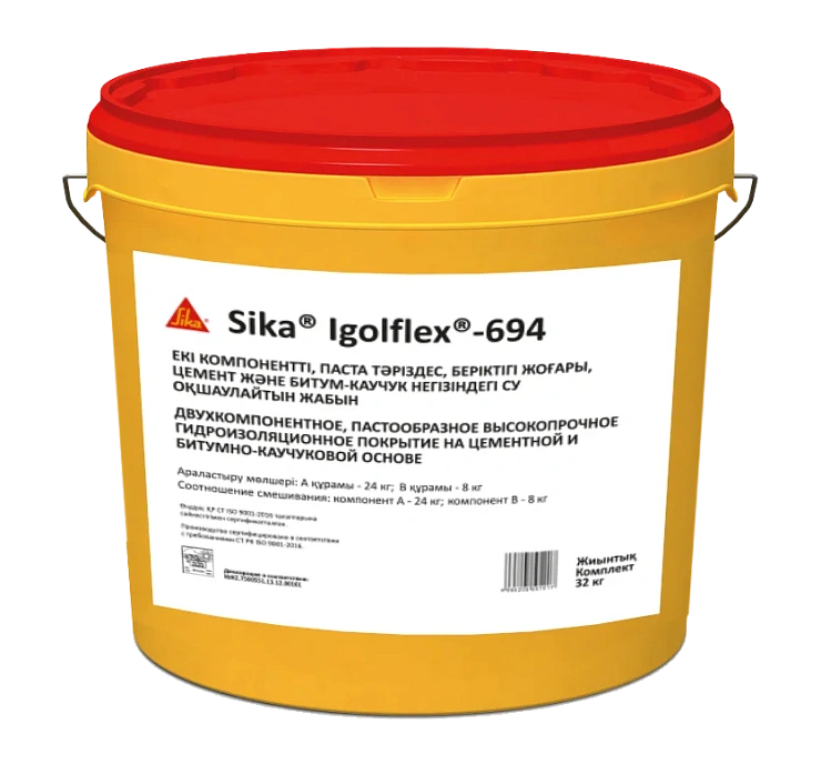 Sika Igolflex-694 (MasterSeal 694) представляет собой двухкомпонентное, пастообразное высокопрочное гидроизоляционное покрытие на цементной и битумно-каучуковой основе.