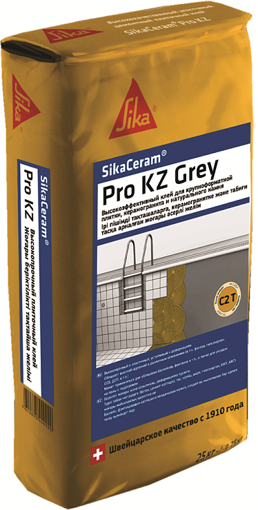 SikaCeram Pro – усиленный цементный плиточный клей с повышенной стойкостью к сползанию и увеличенным открытым временем, предназначенный для внутренних и наружных работ по укладке керамической плитки, керамогранита, натурального и искусственного камня. Соответствует классу C2 TE по ГОСТ Р 56387.
