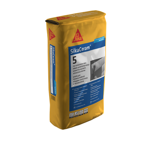 SikaCeram 5 (MasterTile 5) – клей на цементной основе, обладающий высокими фиксирующими свойствами. Используется в качестве связывающего раствора при кладке стен из пенобетонных и газобетонных блоков.