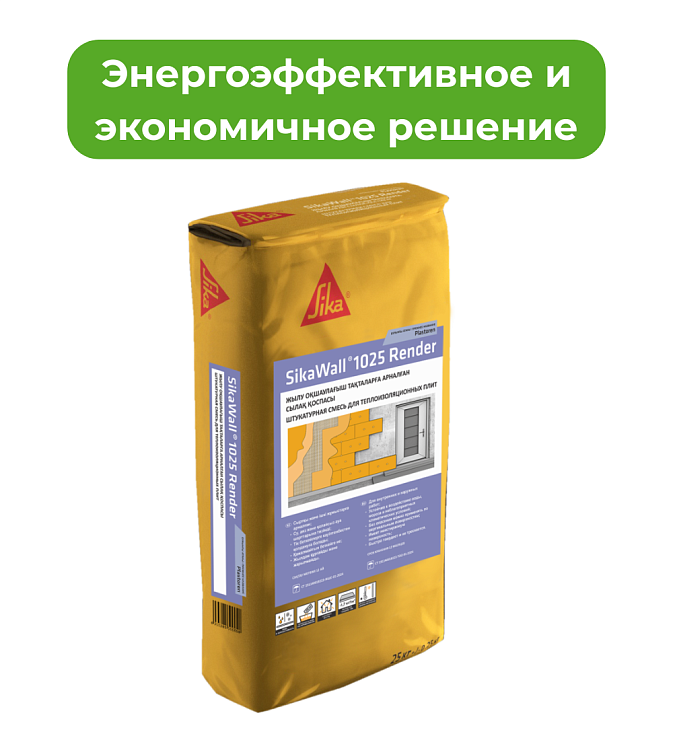 SikaWall 1025 Render (USTA Plastoren) специально разработанная штукатурная смесь для теплоизоляционных плит (пенополистироловые, минераловатные плиты). Нельзя наносить SikaWall 1025 Render на основу раньше чем за 2 дня после приклеевания плиты. Основа должна быть прочной, чистой и укреплена дюбелями.