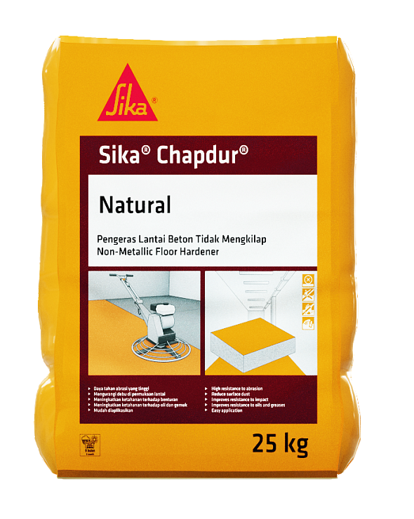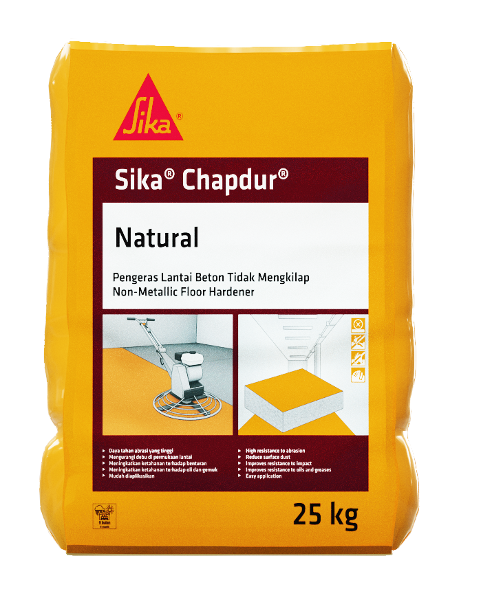 SikaChapdur® это готовая смесь специальных цементов, твердых минеральных наполнителей и химических добавок. SikaChapdur® вносится на свежеуложенный бетон. Упрочнитель SikaChapdur® используется для создания высокопрочных и долговечных бетонных полов с гладкой нескользкой поверхностью, обладающих стойкостью к проникновению масел и жиров.